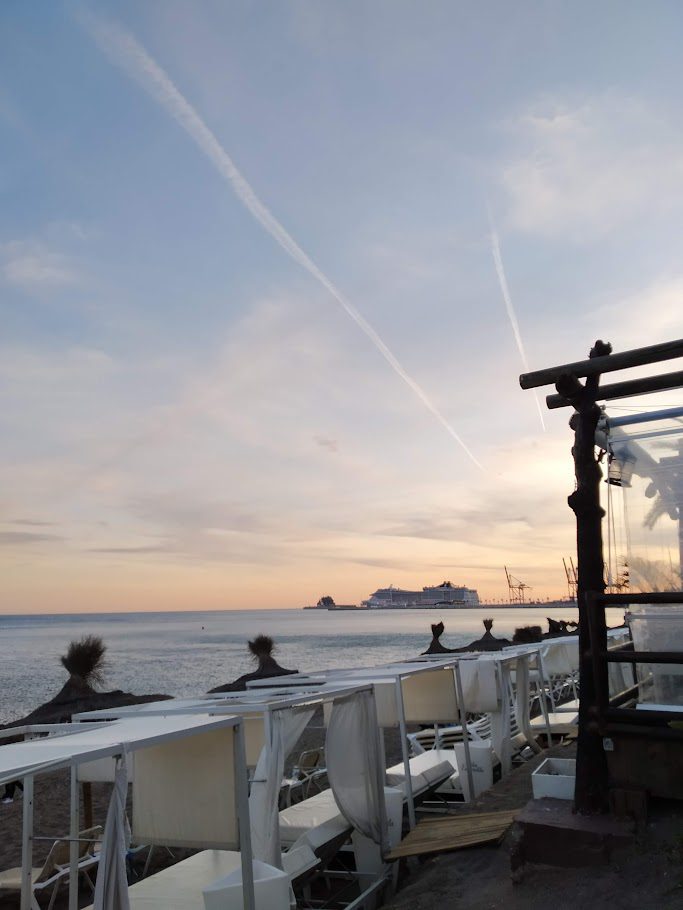 Y cada vez que me tocaba descansar entre turnos (porque al final no me iba en todo el día) me daban una pinta de San Miguel, un platazo de comida, y me tiraba al mediterráneo a hacer la plancha y pensar inevitablemente “cómo llegué acá” .
